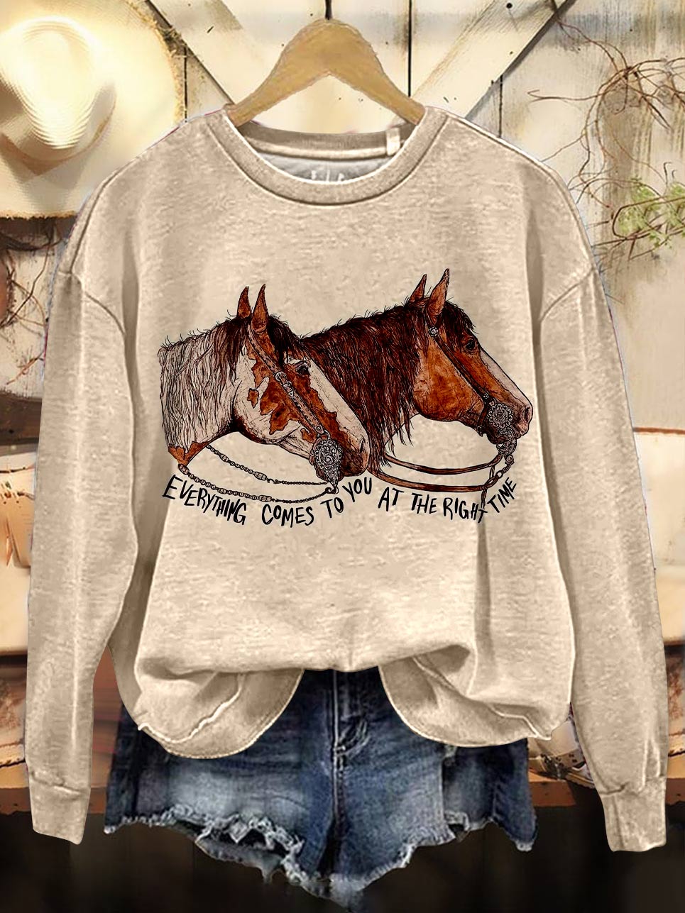 Classic Horse Art Print Casual Cotton Sweatshirt
