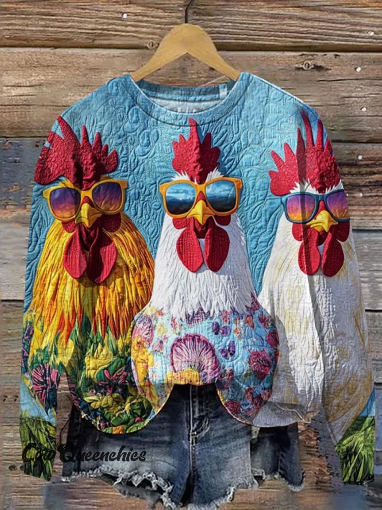 Colorful Funny Chicken Art Print Casual Sweatshirt