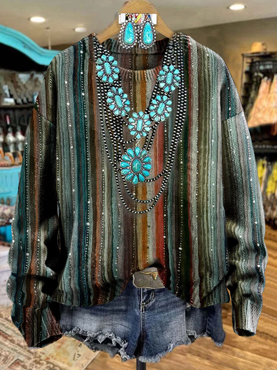 Vintage Colorful Stripes Print Knit Pullover Sweater