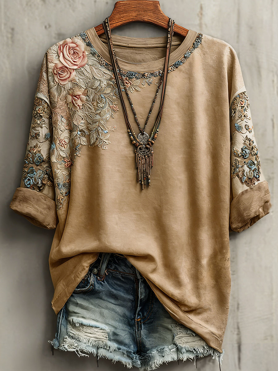 Women's Vintage Printed Casual Short Sleeve T-Shirt